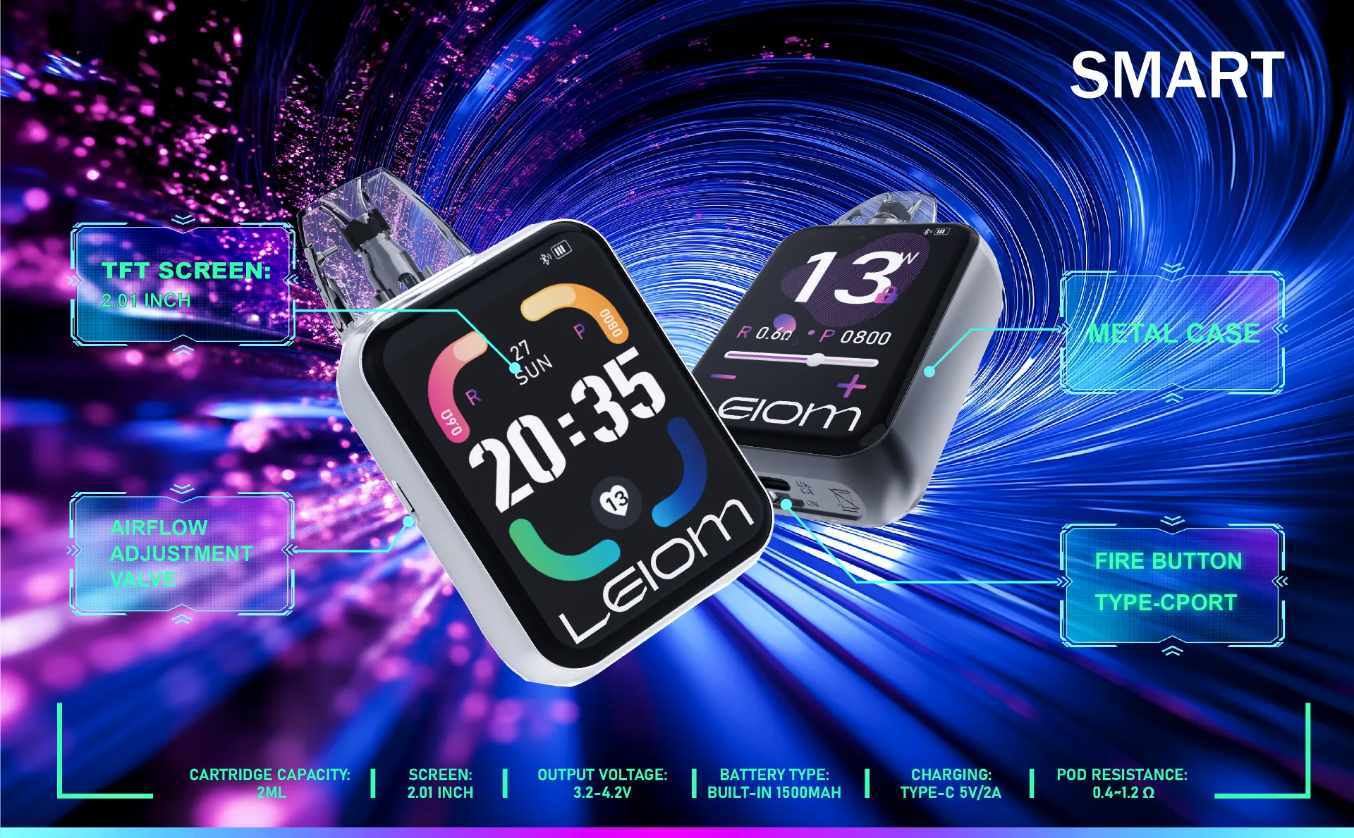 A sleek digital screen on the side keeps you informed with real-time updates, like battery life and your chosen ice level. It’s vaping with a modern, tech-savvy edge.